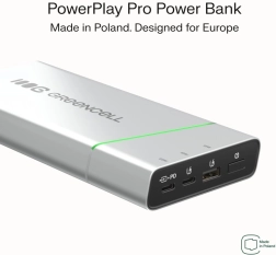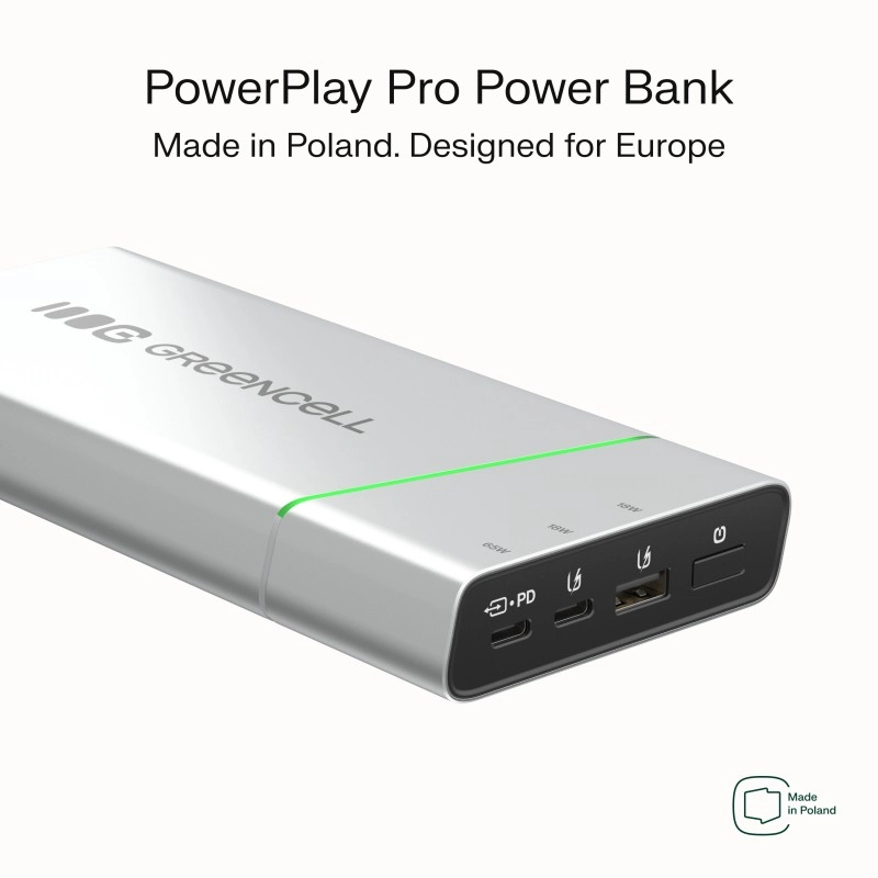 De compacte en krachtige GREENCELL PowerPlay Pro powerbank biedt een capaciteit van 20.800 mAh en snel opladen met USB‑C Power Delivery 65 W. Dankzij 2× USB‑C en 1× USB‑A met Ultra Charge laadt hij razendsnel laptop, telefoon en oordopjes op. Robuuste behuizing, tot 1000 laadcycli en volledige beveiliging tegen overspanning, kortsluiting en overcharging. Geschikt voor op reis en toegestaan in het vliegtuig.