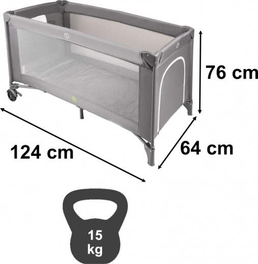 Lichte en compacte reiswieg voor baby’s en kinderen tot 15 kg met afmetingen 60 × 120 cm biedt snel op- en inklappen, ademende gaaszijdes voor zicht en luchtcirculatie, zij-ingang met rits voor zelfstandig in- en uitstappen en een praktisch vak. Inclusief opvouwbare matras en draagtas.