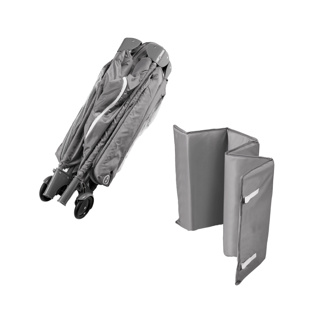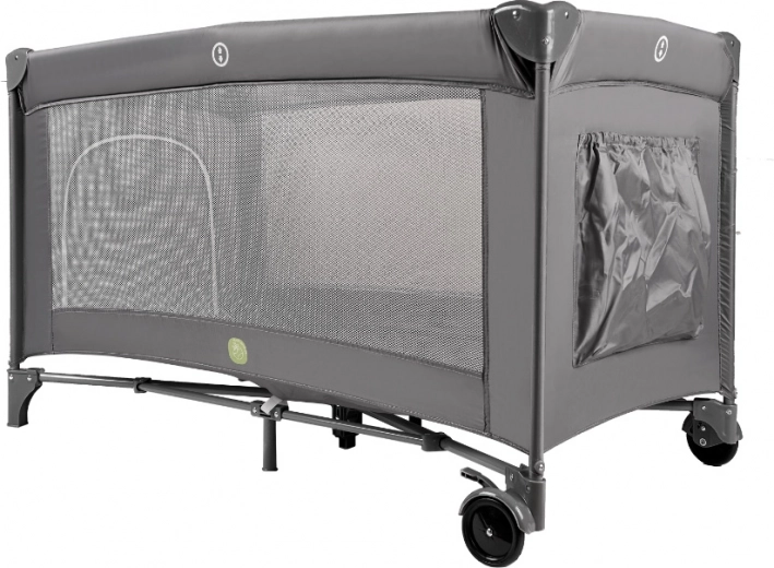 Het zijraam met rits vergemakkelijkt de toegang voor ouders en maakt zelfstandig uitstappen voor kinderen mogelijk. Binnenin bevindt zich een matras met klittenbandbevestiging die de bodem stabiliseert en het slaapcomfort verhoogt. Ingeklapt is de wieg zeer compact en past in de kofferbak; de meegeleverde tas met handgrepen vergemakkelijkt dragen en opbergen.