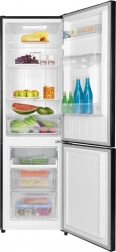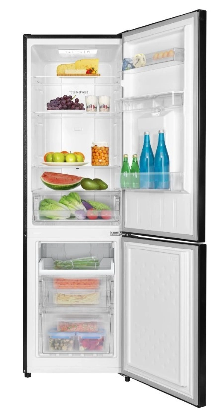 Deze vrijstaande koel-vriescombinatie met vriezer onder valt op door het strakke design in het zwart en het dagelijkse gebruiksgemak. Total NoFrost voorkomt ijsvorming, dus geen ontdooien meer, en de LED-verlichting zorgt voor helder zicht, ook in de hoeken. De praktische waterdispenser in de deur biedt snel verfrissing zonder de koelkast te openen.