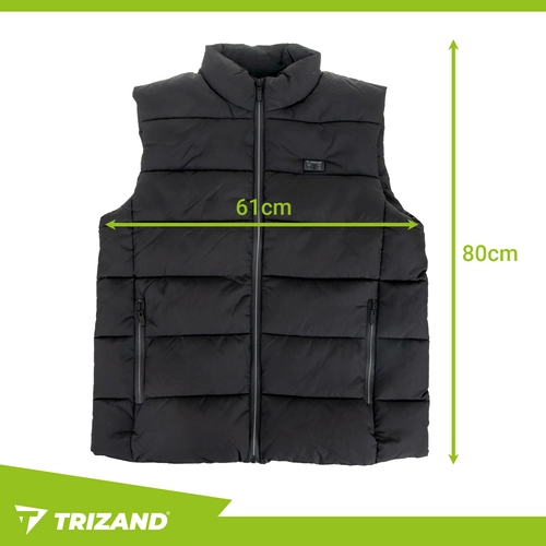 Geniet van aangename warmte, zelfs op de koudste dagen, met de verwarmde TRIZAND bodywarmer in maat XL. Hij biedt 11 verwarmingszones, 3 verwarmingsniveaus, onafhankelijke bediening van voor- en achterzijde en handige USB-voeding via een powerbank. Licht, winddicht en comfortabel materiaal met een zachte opstaande kraag garandeert comfort de hele dag door.