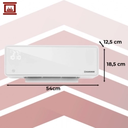 Comfortabele en elegante oplossing voor thuis, kantoor en winkels. Het KAMINER ZELVION luchtgordijn met frontglas zorgt voor een gelijkmatige warmteverdeling dankzij de groothoek, oscillerende lamel en twee vermogensniveaus 1000 / 2000 W. Het LED‑display en de intuïtieve bediening met één knop maken dagelijks gebruik eenvoudig, terwijl de IP23‑bescherming het apparaat beschermt tegen vocht en stof.