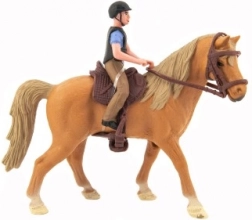 Deze realistische set bevat een jockey in rij-outfit met helm en een paard met vaste manen, hoofdstel en zadel. Dankzij het compacte formaat van 15 cm is hij ideaal voor thuis en op reis en ondersteunt hij fantasie en de ontwikkeling van de fijne motoriek.