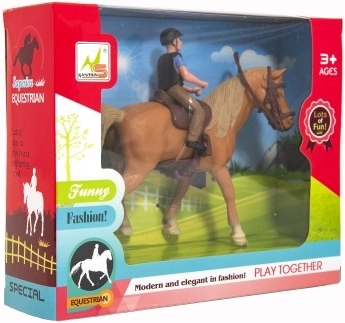 - Plastic paard met hoofdstel en zadel, jockeyfiguur met helm