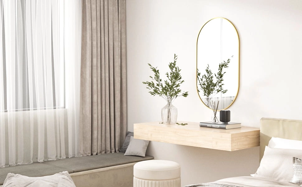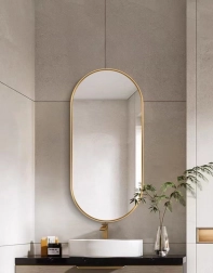 Breng tijdloze elegantie in huis. De ovale vorm in combinatie met de matgouden aluminium lijst benadrukt het industriële karakter en verandert badkamer, hal en woonkamer in een stijlvolle en knusse plek. Dankzij het hoogwaardige glas biedt de spiegel een perfect, niet-vervormd beeld en vergroot en verheldert hij de ruimte visueel.