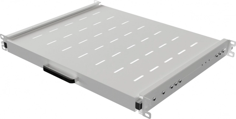 Het geperforeerde oppervlak ondersteunt een optimale luchtstroom en warmteafvoer, terwijl de praktische voorste handgreep het hanteren vergemakkelijkt. De vierpuntsmontage staat garant voor stabiliteit en betrouwbaarheid van het geheel. Verstelbare montagebeugels maken installatie in kasten met verschillende dieptes mogelijk, waardoor de oplossing universeel en eenvoudig aanpasbaar is.