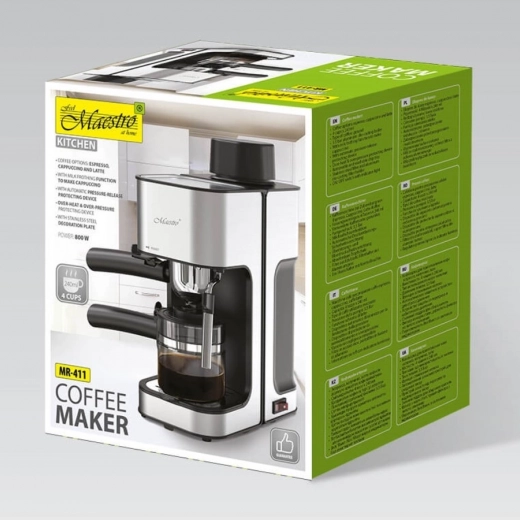 De robuuste constructie met een roestvrijstalen filter en een aluminium hendel garandeert een lange levensduur en consistente prestaties. De compacte afmetingen besparen ruimte op het aanrecht en de glazen kan van 240 ml maakt het mogelijk om in één keer meerdere porties te zetten voor familie of gasten.