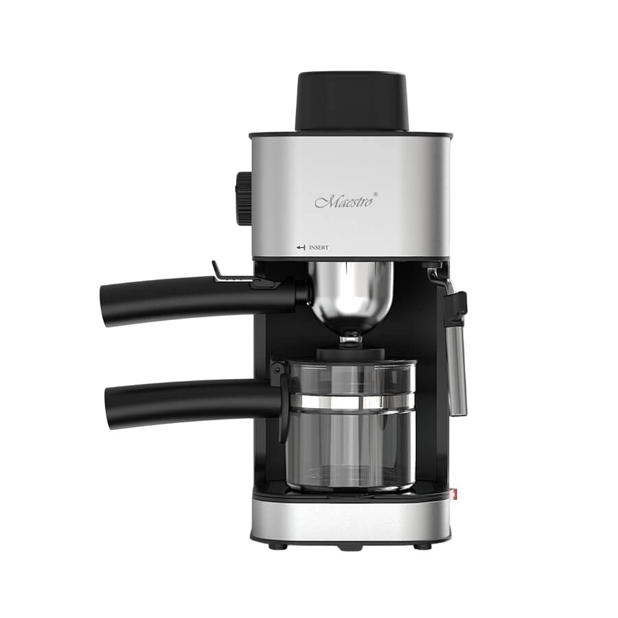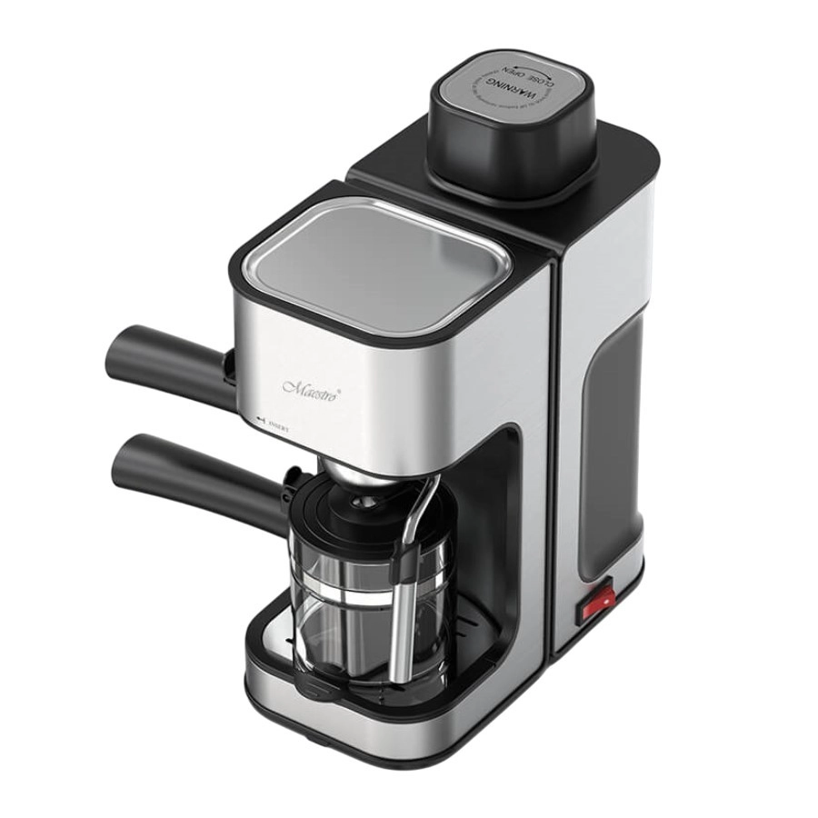 De Maestro hendel-espressomachine is de ideale keuze voor alle koffieliefhebbers die thuis kwalitatieve espresso, cappuccino of latte willen zonder ingewikkelde bediening. Hij werkt met gemalen koffie, zodat je precies de melange en intensiteit kunt kiezen die je lekker vindt. Dankzij het stoompijpje maak je eenvoudig fijn melkschuim en het verwarmde kopjesplateau zorgt ervoor dat je koffie langer heet blijft.