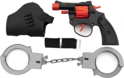 Dit kinder capspistool zorgt voor veel veilig speelplezier en stimuleert de fantasie bij politie-rolspel. De set bevat een praktisch holster voor aan de riem en plastic handboeien, waardoor de speelervaring nog echter wordt. Dankzij het compacte formaat van 13 cm ligt het pistool ook bij kleinere kinderen goed in de hand.