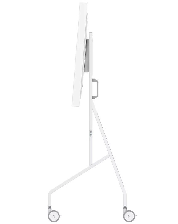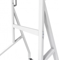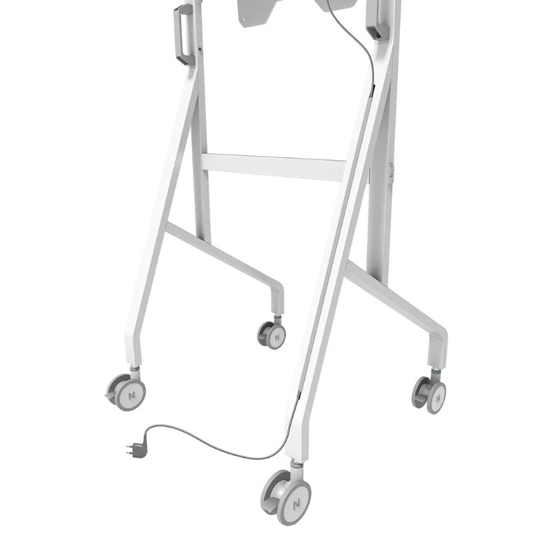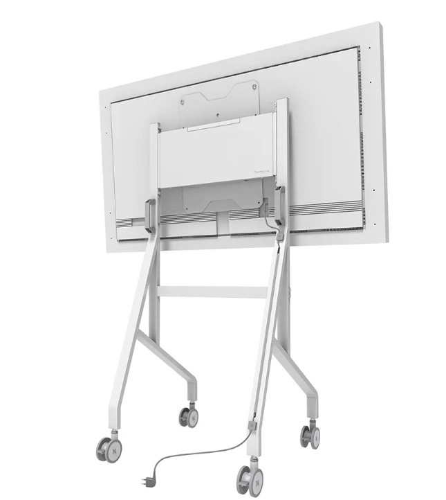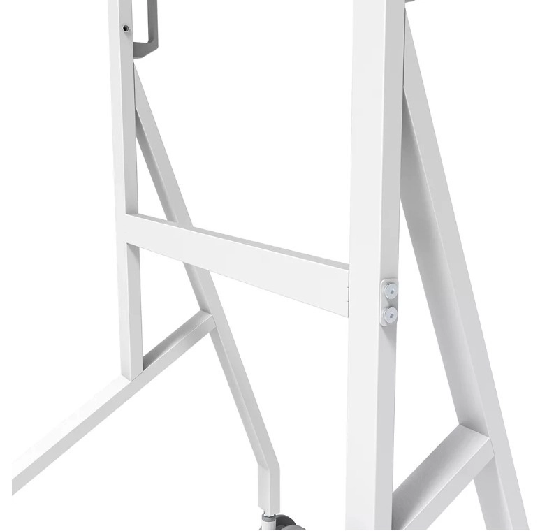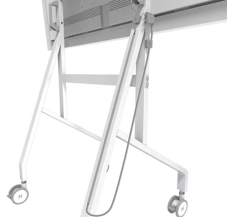 De stabiele metalen constructie met een strakke witte afwerking vult het design van Samsung Flip aan en maakt tegelijk opgeruimde kabelgeleiding mogelijk. Grote zwenkwielen met vergrendeling (100 mm) en ergonomische handgrepen zorgen voor soepel verplaatsen tussen ruimtes. Dankzij de snelle installatie van circa 10 minuten is de montage eenvoudig en snel.