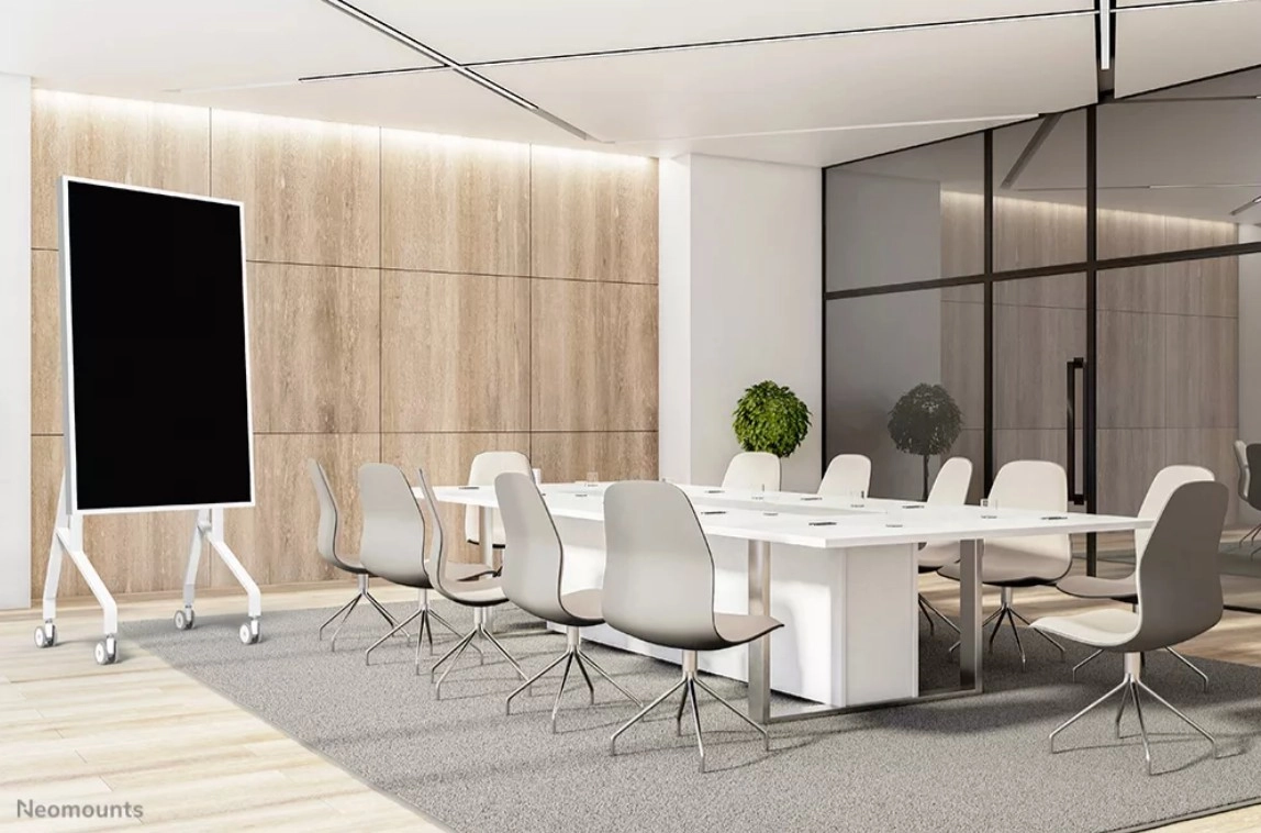 De mobiele standaard Neomounts MOVE Go Flip is op maat ontworpen voor SAMSUNG FLIP 55″ en 65″. Dankzij de soepele 90°-rotatie schakelt u eenvoudig tussen liggend en staand – ideaal voor brainstormen, onderwijs en hybride vergaderingen. Twee handmatig instelbare hoogtestanden helpen het scherm aan te passen aan de omgeving en de gebruikershoogte.