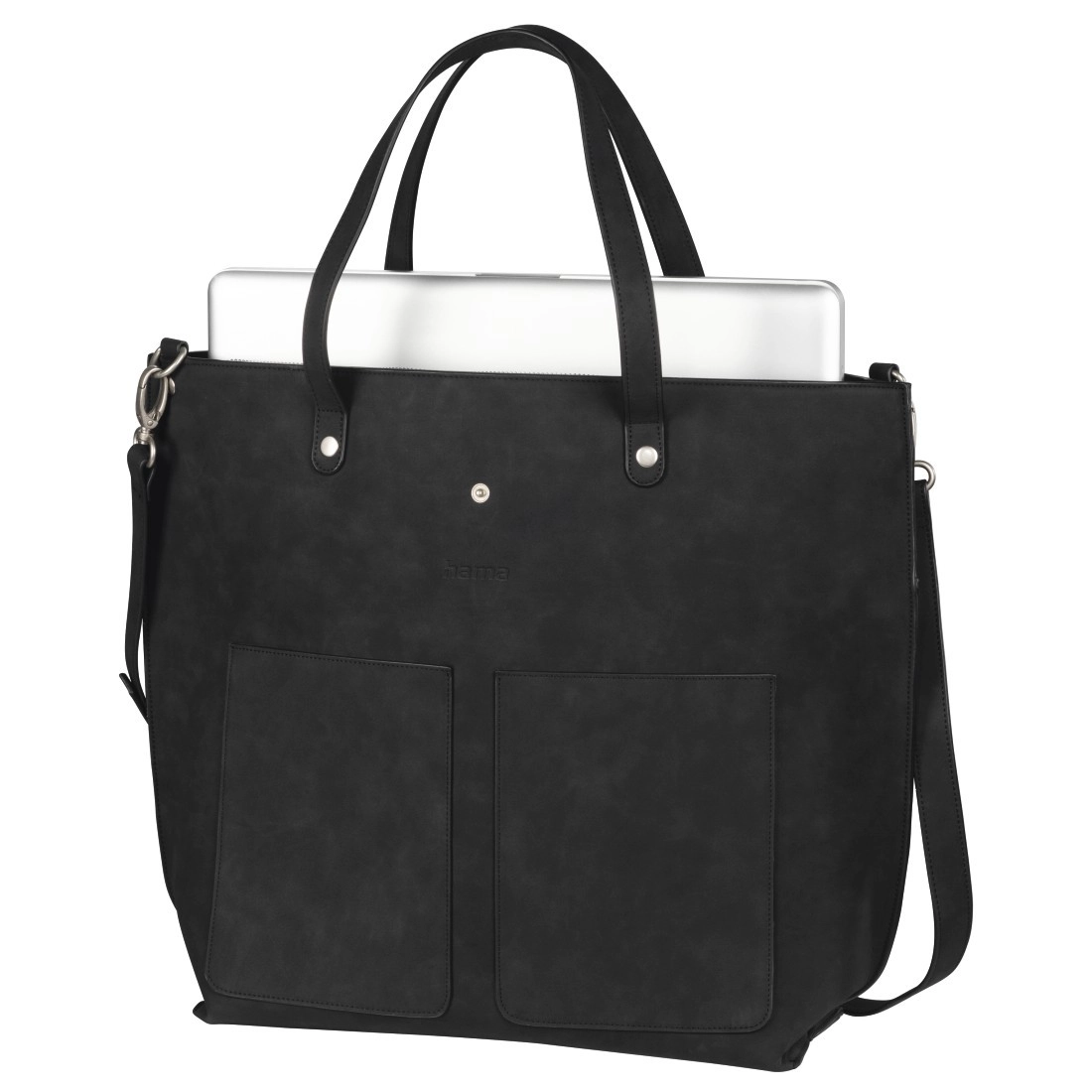 Synthetisch leer met suède-look en een subtiel glanzende voering creëren een tijdloze, representatieve stijl die geschikt is voor kantoor en afspraken.