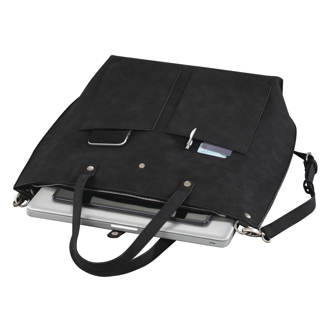 De hoofdruimte bevat een gepolsterd vak voor een laptop van 13,3–14,1″ met een fixatieband met klittenband, een apart vak voor een tablet tot 28 cm (11″) en een praktische organizer voor accessoires. De afneembare, in lengte verstelbare schouderriem zorgt voor comfort op drukke dagen.