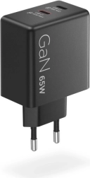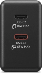 Profiteer van het vermogen van 65 W met moderne GaN-technologie, die zorgt voor hogere efficiëntie, minder warmteontwikkeling en een compact formaat. Twee USB‑C-poorten maken het mogelijk om bijvoorbeeld een laptop en een smartphone gelijktijdig op te laden – slim en zonder compromissen.