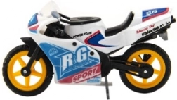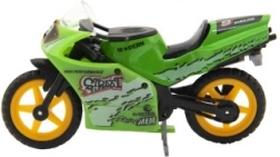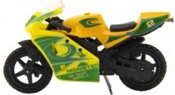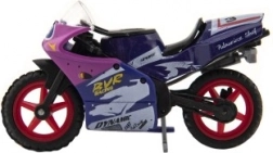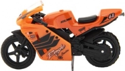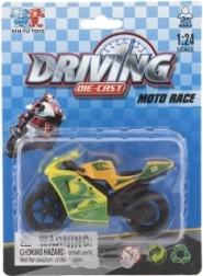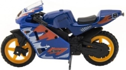 De model race motorfiets heeft een lengte van 8 cm en is gemaakt van een combinatie van metaal en plastic. Geweldig voor kinderen vanaf 3 jaar, stimuleert creatief en fantasierijk spel. De motorfiets is verpakt op een kaart en is verkrijgbaar in verschillende kleuren.