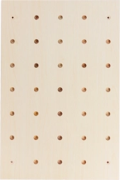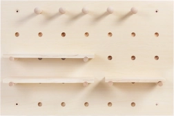 Het bord met een dicht raster van gaten maakt het mogelijk de positie van pennen en planken snel te wijzigen, precies volgens de actuele behoeften – van sleutels en brillen tot kantooraccessoires.