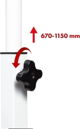Je past de hoogte eenvoudig aan binnen een bereik van ongeveer 67–115 cm en ondersteunt zo de ergonomie tijdens zitten en staan.
