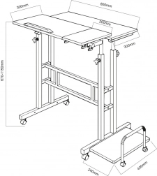 Inclusief een zijplank van 24 × 40 cm, ideaal voor een desktop, printer of andere apparatuur. Dankzij de wielen verplaats je de tafel eenvoudig naar waar je hem nodig hebt en pas je je werkplek soepel aan. Hoogteverstelling in het bereik van ca. 67–115 cm ondersteunt een gezondere houding zowel zittend als staand.
