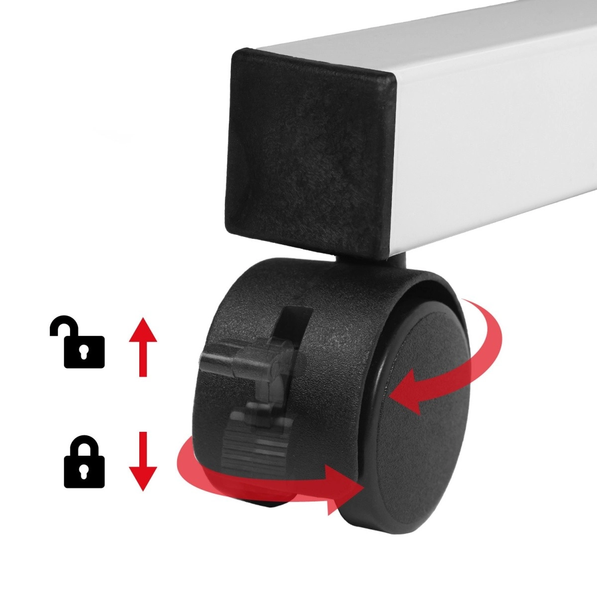 Geïntegreerde plank van 24 × 40 cm voor een pc of printer en vier wielen voor het snel verplaatsen van je werkplek.