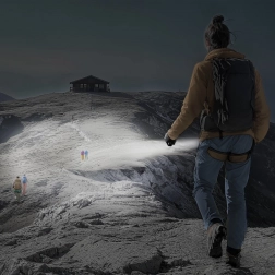 Schakel tussen sterk, gemiddeld, gedimd en knipperend licht. Altijd de ideale helderheid voor wandelen, kamperen en klussen.