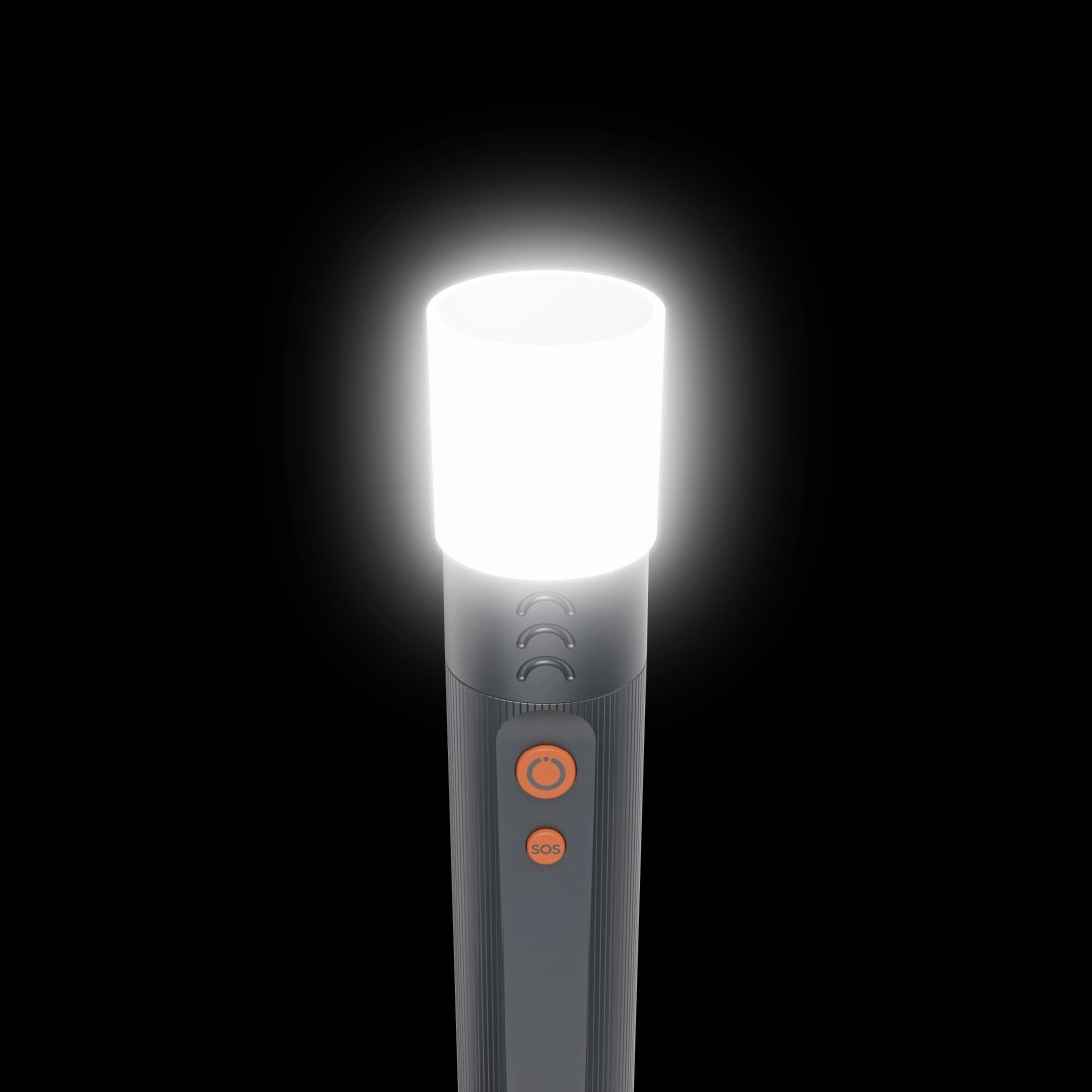 Vloeiende scherpstelling voor een smalle of brede bundel. De diffuser creëert gelijkmatig omgevingslicht voor werk, kamperen en het verlichten van het interieur van de tent.