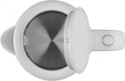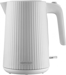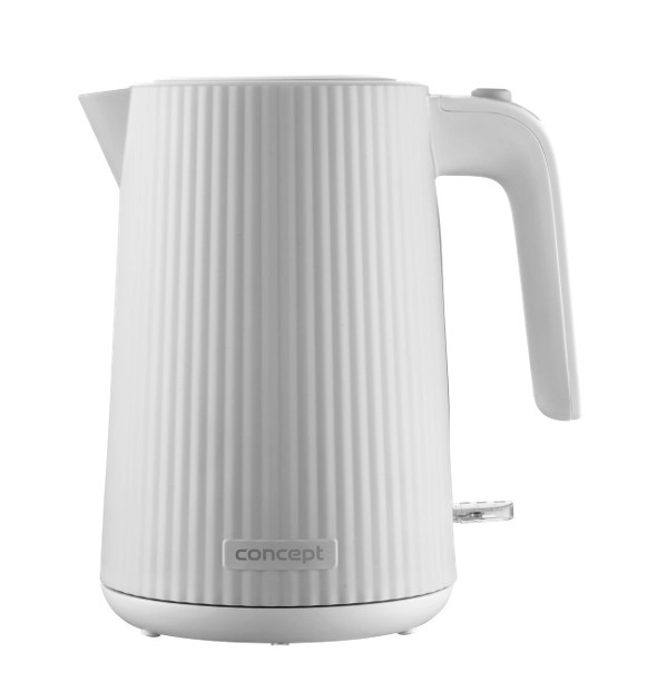 Deze witte waterkoker van duurzaam kunststof combineert een modern geribbeld uiterlijk met praktische functies voor dagelijks gebruik. De inhoud van 1,7 liter is ruim voldoende voor het hele gezin, terwijl de verlichte schakelaar duidelijk de werking aangeeft. Het grote transparante venster voor het waterniveau zorgt voor maximale overzichtelijkheid.