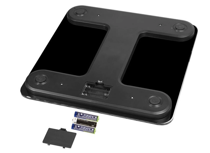 Gehard glas van 6 mm, antislipvoetjes en betrouwbare werking op batterijen garanderen dagelijks veilig gebruik.