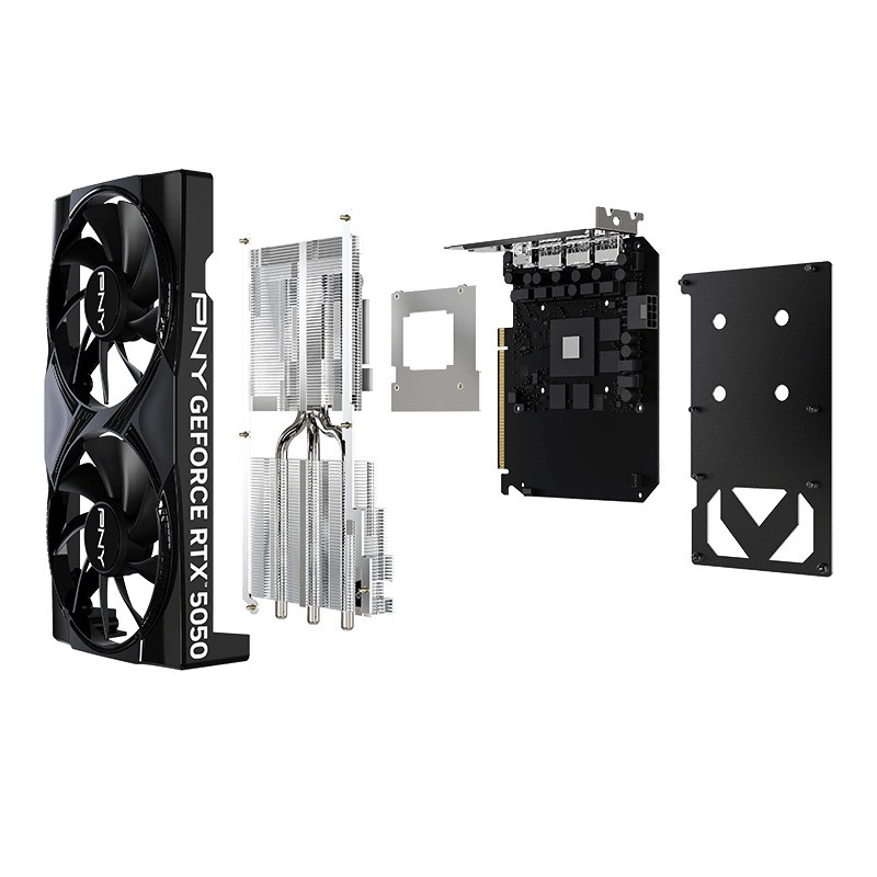 De PNY GeForce RTX 5050 is gebaseerd op de NVIDIA Blackwell-architectuur en levert hoge prestaties voor zowel gaming als contentcreatie. Dankzij de geavanceerde RT- en Tensor-cores biedt hij realistische belichting met ray tracing, terwijl AI-functies, beeldopschaling en productiviteitsapps worden versneld. De metalen backplate verhoogt de stijfheid en beschermt het PCB, terwijl dubbele axiale ventilatoren zorgen voor lage temperaturen en stille werking.