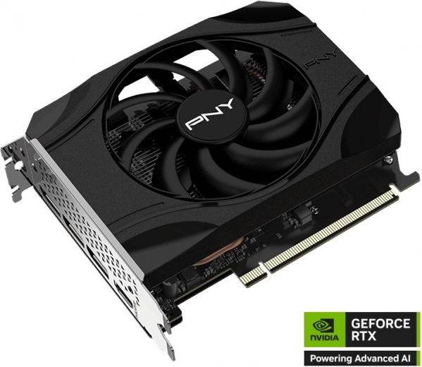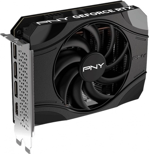 Het compacte éénventilator-ontwerp met een efficiënt koelblok en metalen I/O-bracket past in een breed scala aan builds. De kaart biedt moderne uitgangen HDMI/DisplayPort voor multi-monitoropstellingen en ondersteuning voor hoge resoluties en verversingssnelheden.