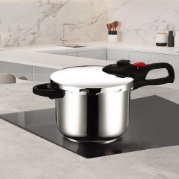 Deze snelkookpan is een ideale hulp voor het snel bereiden van soepen, stoofgerechten en vlees. Dankzij het volume van 6 liter kookt u comfortabel porties voor het hele gezin. Hoogwaardig roestvrij staal garandeert een lange levensduur, eenvoudig reinigen en een blijvend mooi uiterlijk.