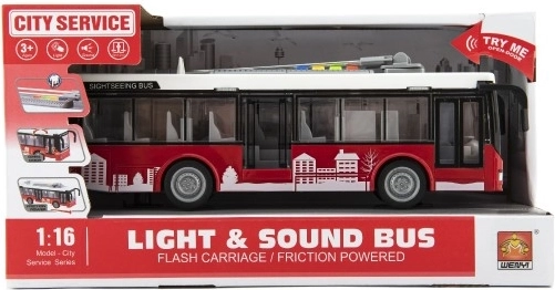 Ontdek de geweldige stadsbus uit de City Service-serie, die uitblinkt met realistische afwerking, rood design en eenvoudige bediening. Dankzij het vliegwiel hoef je de bus alleen maar aan te duwen en hij rijdt vooruit, terwijl lichten en geluiden zorgen voor een authentieke sfeer van stadsvervoer.