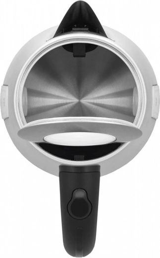 De knop in het handvat opent het deksel met één klik en de verlichte schakelaar laat duidelijk zien wanneer de waterkoker in gebruik is. Eenvoudige en intuïtieve bediening.