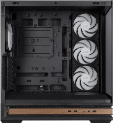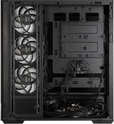 Voor perfecte orde in de behuizing is er 34 mm ruimte voor kabelgeleiding en ondersteuning voor een omgekeerde lay-out van het moederbord met onderliggende connectoren voor een minimalistische uitstraling. De meegeleverde ARGB-hub met LED-knop (reset) vergroot de mogelijkheden voor het bedienen van lichteffecten.