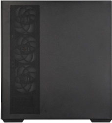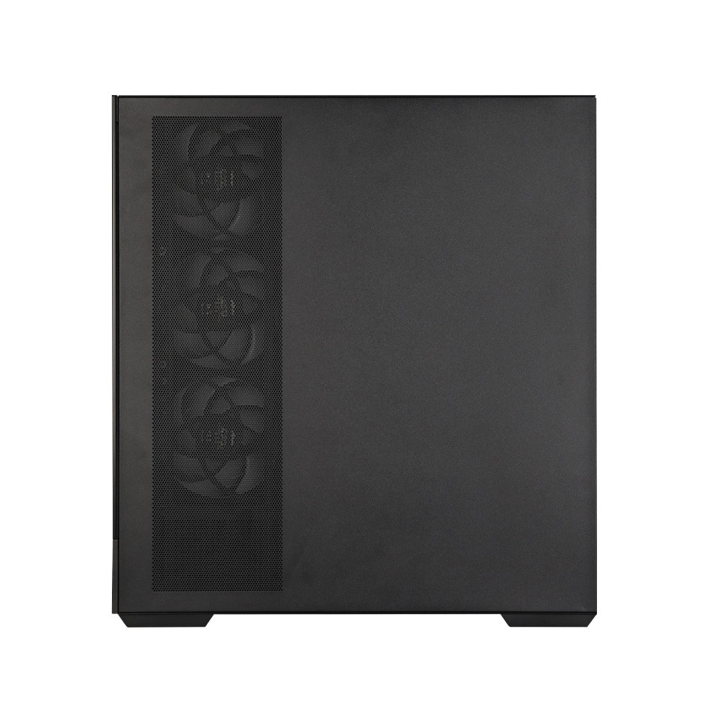 De behuizing is geoptimaliseerd voor maximale luchtstroom dankzij zijdelingse aanzuiging en een slimme ventilatorindeling. AF120-ventilatoren minimaliseren trillingen, verminderen aerodynamisch geluid en verhogen de efficiëntie van de luchtstroom. Het afneembare zijpaneel vereenvoudigt montage en onderhoud, terwijl magnetische stoffilters boven en onder stofophoping beperken en snelle warmteafvoer ondersteunen.