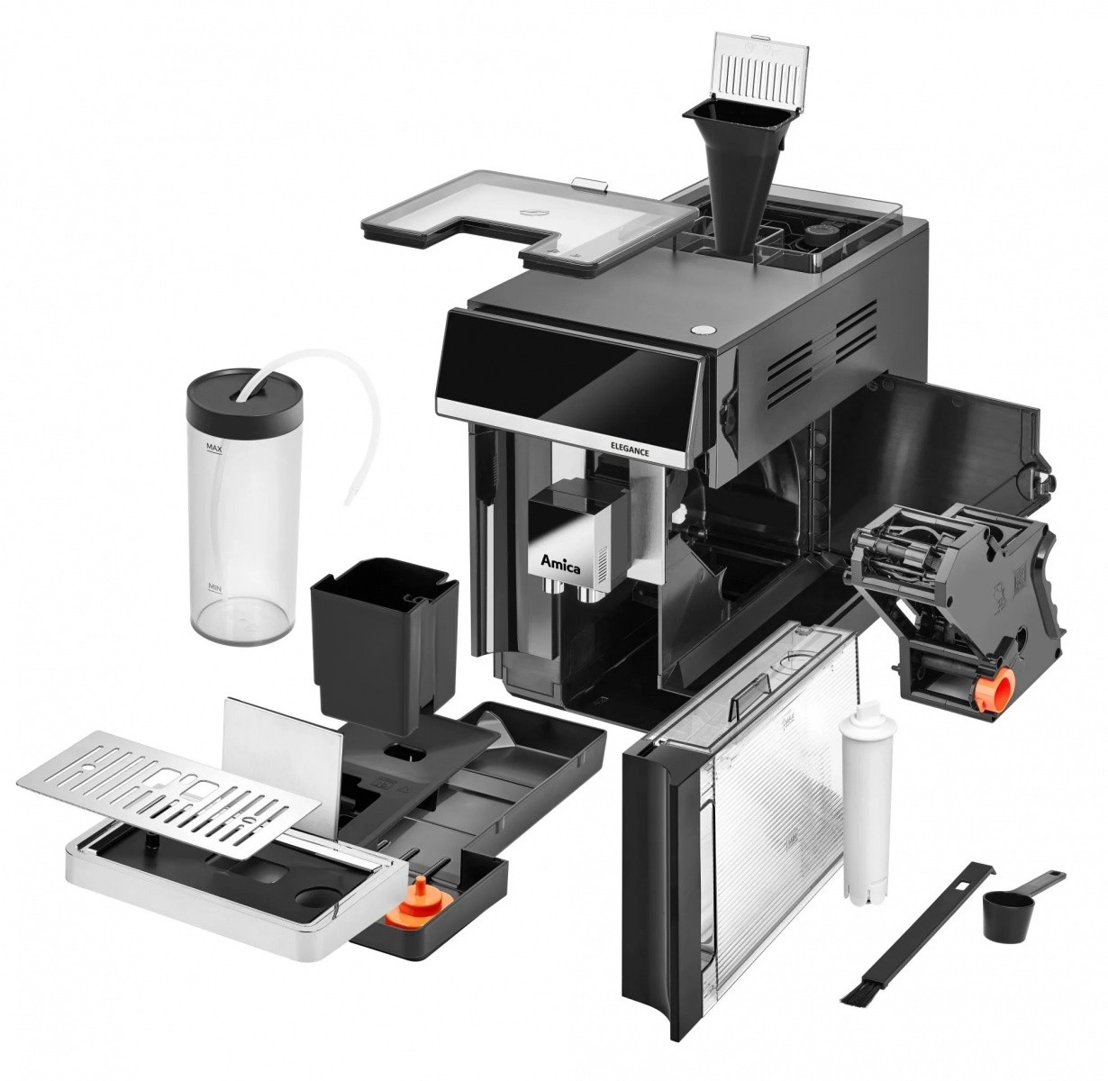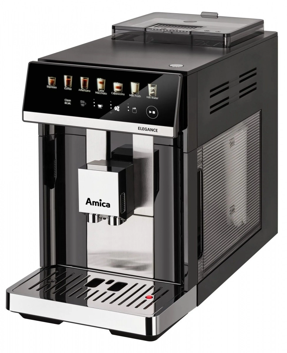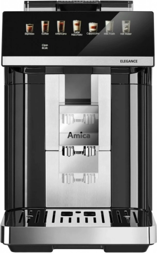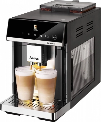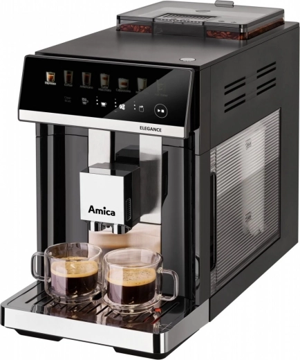 Amica Elegance is een betrouwbare automatische koffiemachine voor het bereiden van espresso, cappuccino en caffè latte in perfecte verhoudingen. Dankzij de roestvrijstalen molen worden de bonen vlak voor de extractie gemalen en kies je uit 5 maalstanden voor de gewenste smaakintensiteit. Hoge druk zorgt voor een volle aroma en een romige schuimlaag, terwijl het SuperCrema-systeem elke kop afwerkt met een rijke crema.