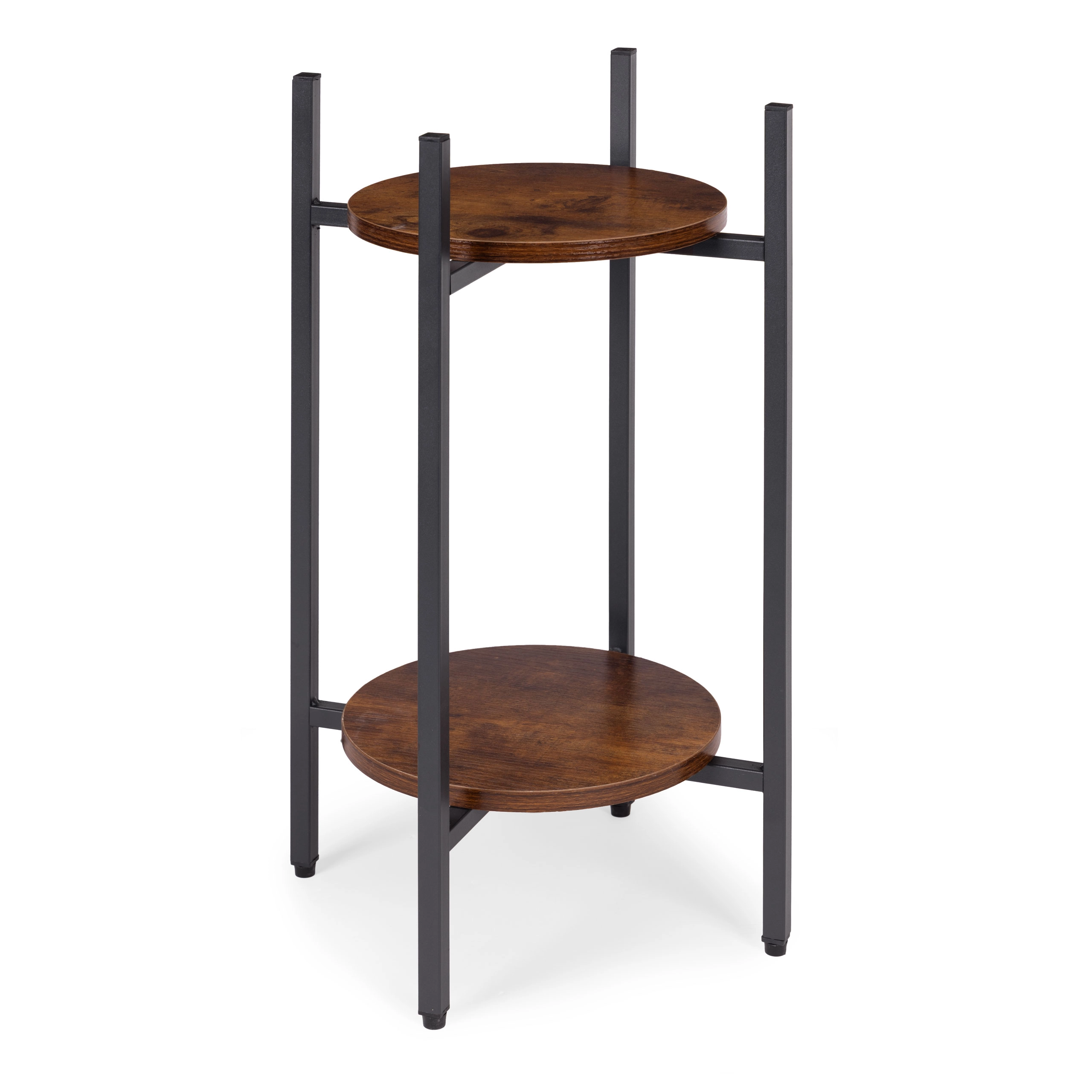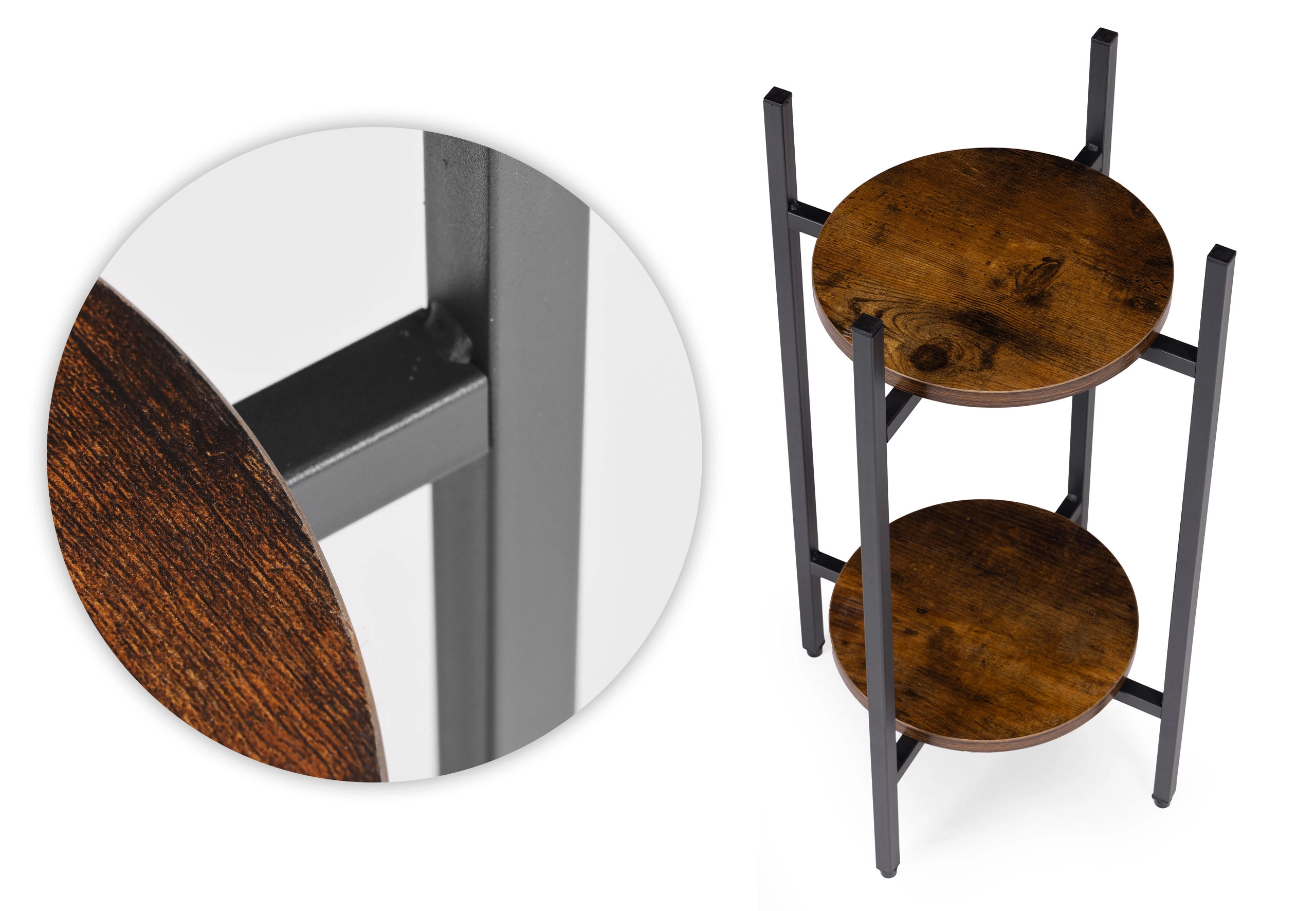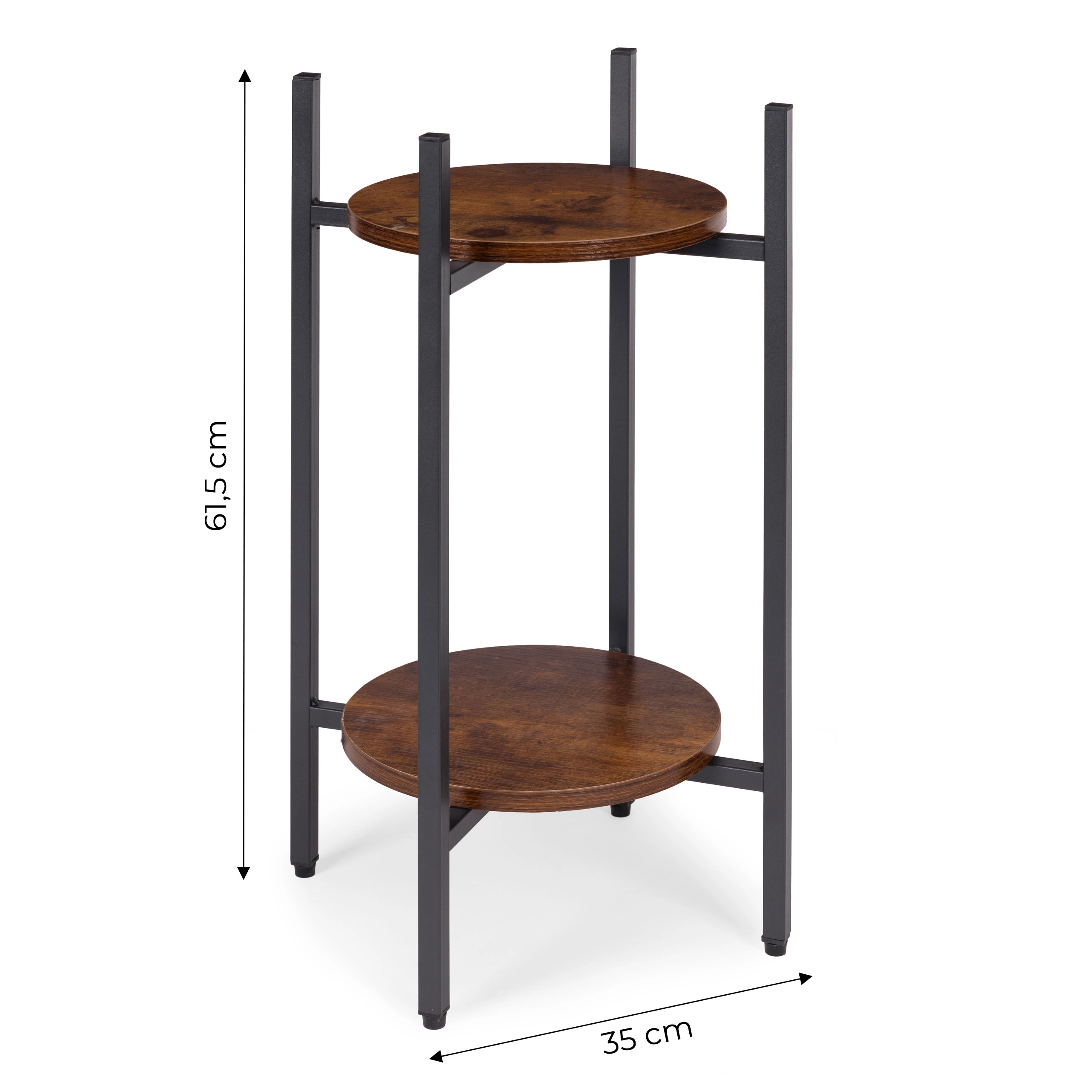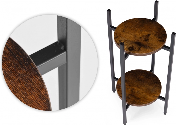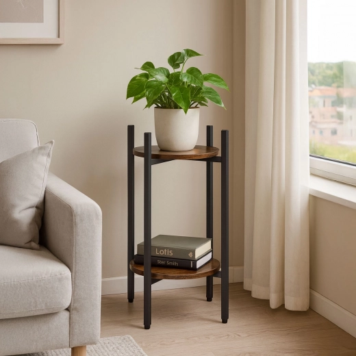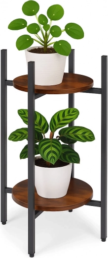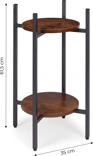 Presenteer je favoriete bloemen, kruiden of decoraties op een tweelaagse standaard die een industriële look in elke ruimte brengt. Dankzij de compacte afmetingen plaats je hem eenvoudig naast de bank, in de hal, keuken of op een overdekt terras. Het universele ontwerp past bij moderne en eclectische interieurs en helpt aantrekkelijke groene composities te creëren.