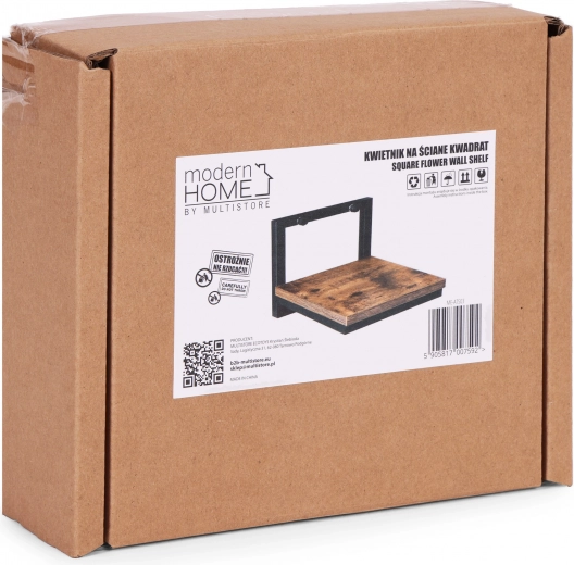 Stijlvolle hangende plantenplank in industriële loftstijl met compacte afmetingen en een stevige constructie. Combineert poedergecoat staal en een plank met houtdecor van spaanplaat (DTD), biedt eenvoudige wandmontage en een draagvermogen tot 5 kg. Ideaal voor de woonkamer, keuken en badkamer voor ruimtebesparing en het decoratief presenteren van planten.