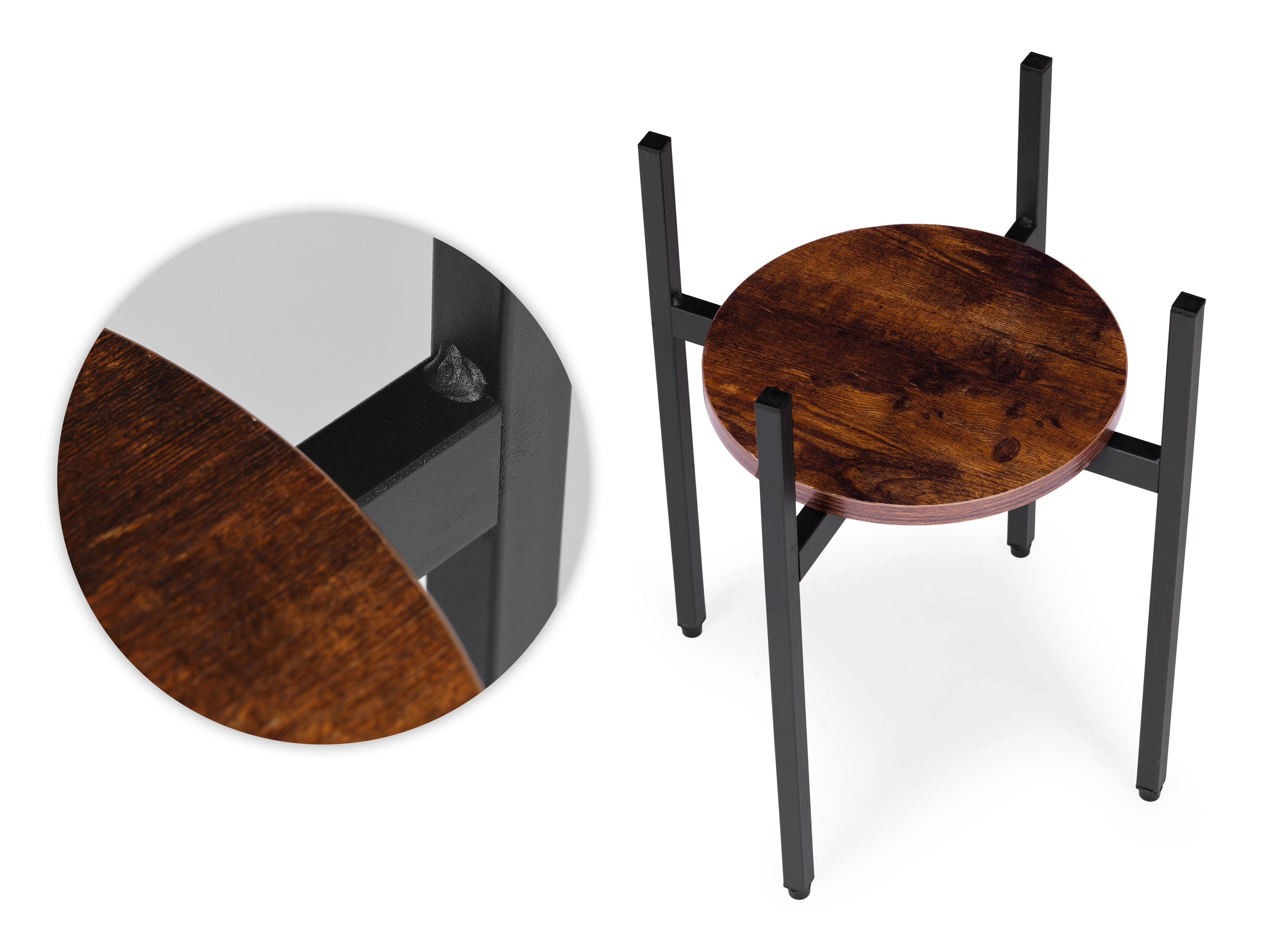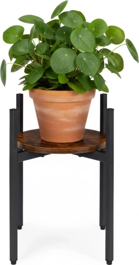Presenteer je favoriete planten in stijl en met oog voor ruimte. Deze standaard met industriële uitstraling combineert poedergecoat staal voor een lange levensduur en corrosiebestendigheid met een spaanplaatplank in een natuurlijke houtlook. Past perfect in moderne en minimalistische interieurs en laat het groen in elke kamer stralen.