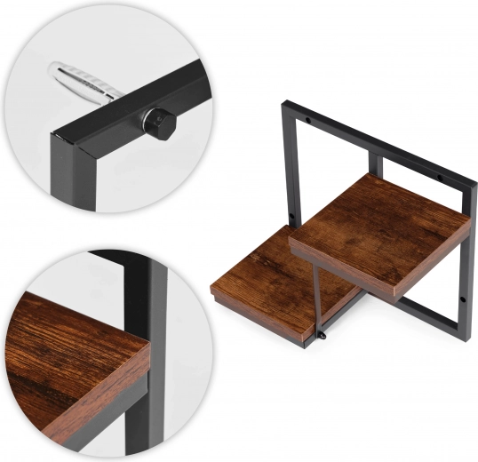 Stijlvolle hangende plantenplank in loftdesign combineert een stevig stalen frame met houtdecor planken. Dankzij de indeling met twee planken bespaar je ruimte en presenteer je kruiden, planten of decoraties elegant. Inclusief complete montageset, draagvermogen tot 10 kg en duurzaam poedergecoat oppervlak voor een lange levensduur.