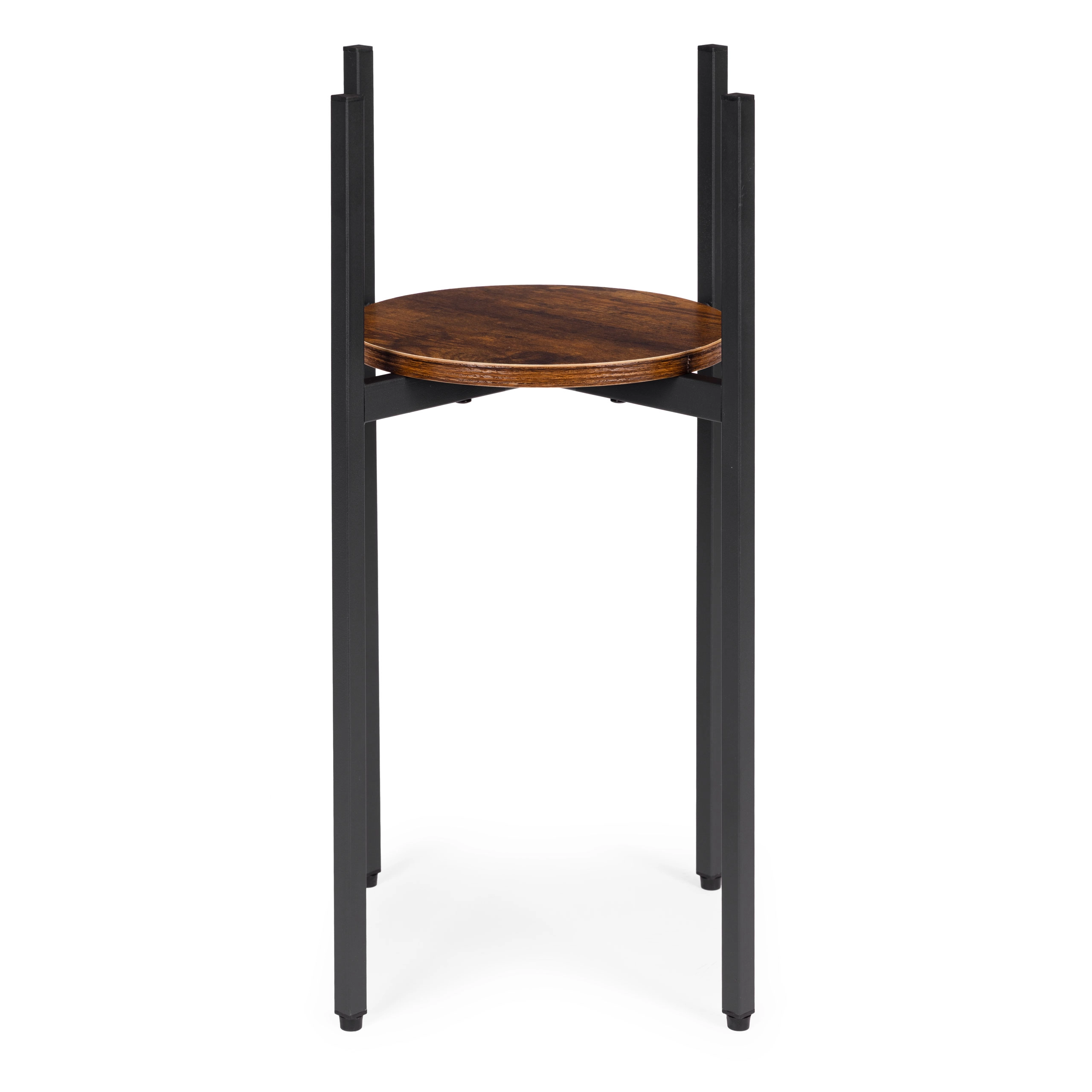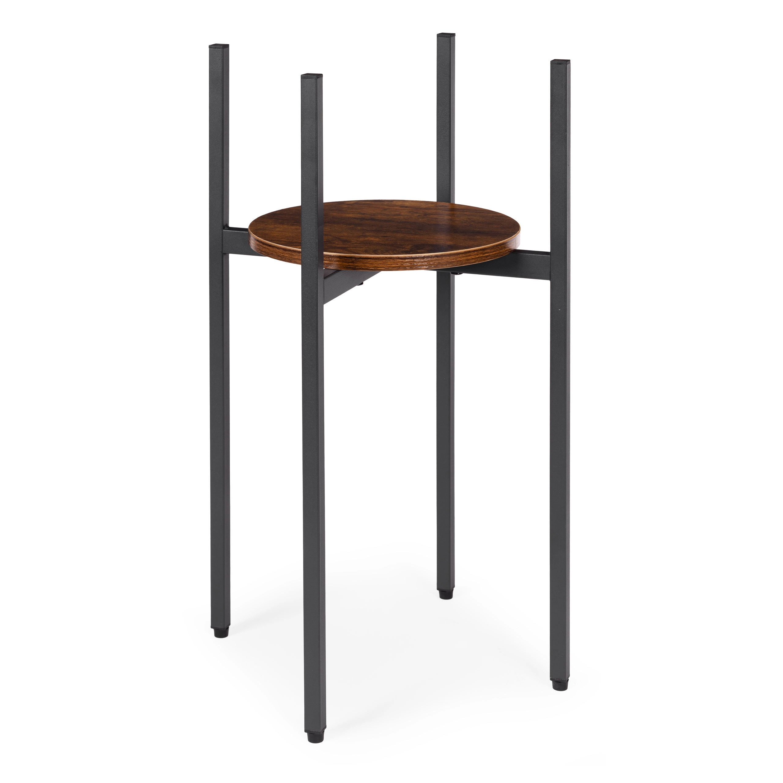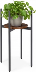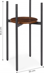 Deze hoge bloemenstandaard in industriële stijl accentueert je planten en geeft je interieur luchtigheid en elegantie. Gepoedercoat staal is bestand tegen corrosie en krassen, terwijl het ronde blad van spaanplaat in een natuurhouten decor het loftkarakter onderstreept. Dankzij de slanke footprint past hij moeiteloos in kleine ruimtes bij het raam, naast de bank of in de hal.