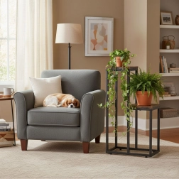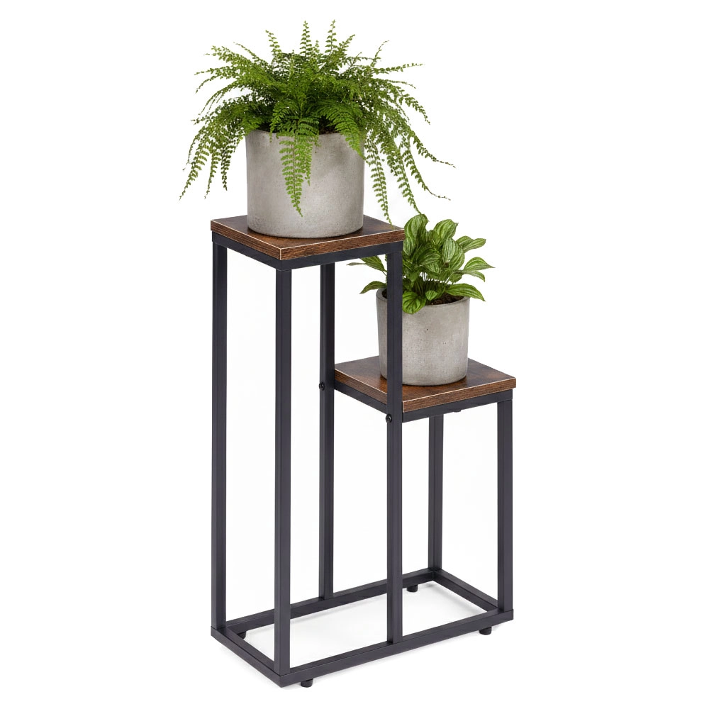 Presenteer je favoriete bloemen, kruiden of decoraties stijlvol en overzichtelijk. De plantenstandaard in loftdesign combineert een moderne uitstraling met duurzame afwerking en past in elk interieur – van woonkamer en keuken tot werkkamer. De twee planken met verschillende hoogtes maken een effectieve opstelling mogelijk van zowel hangende als opgaande planten.