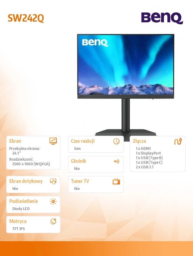 De BENQ SW242Q brengt een precieze beeldweergave naar je creatieve workflow. De 23,8" diagonaal in combinatie met 2K-resolutie zorgt voor scherpe details, terwijl de natuurgetrouwe kleurweergave uitblinkt bij fotobewerking en printvoorbereiding. De responstijd van 5 ms levert een vloeiende weergave zonder storende vervaging.