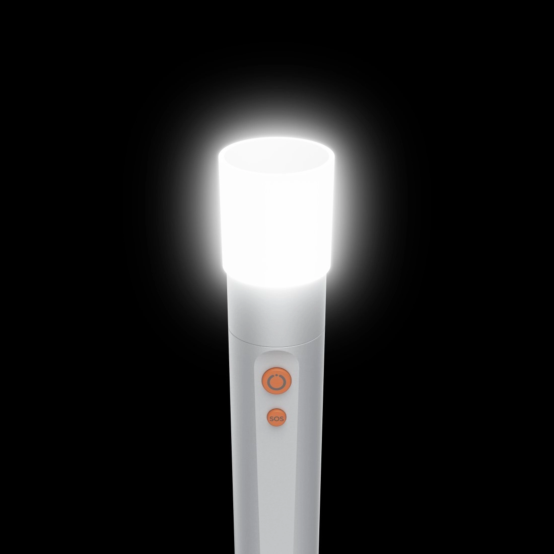 Een speciale knop activeert het SOS-lichtsignaal van de witte LED, wat je veiligheid vergroot tijdens reizen en outdooractiviteiten.