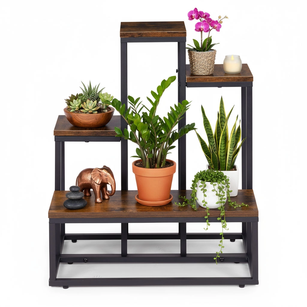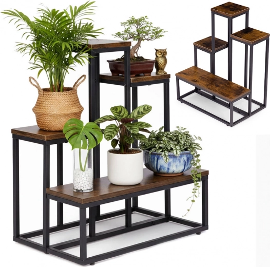 Presenteer uw favoriete planten stijlvol en overzichtelijk. De plantenstandaard in industrieel design voegt zich dankzij de universele uitvoering moeiteloos in een modern interieur of thuiskantoor. De meerniveausindeling bevordert een betere lichttoetreding en maakt het mogelijk een elegante groene compositie in elke kamer te creëren.