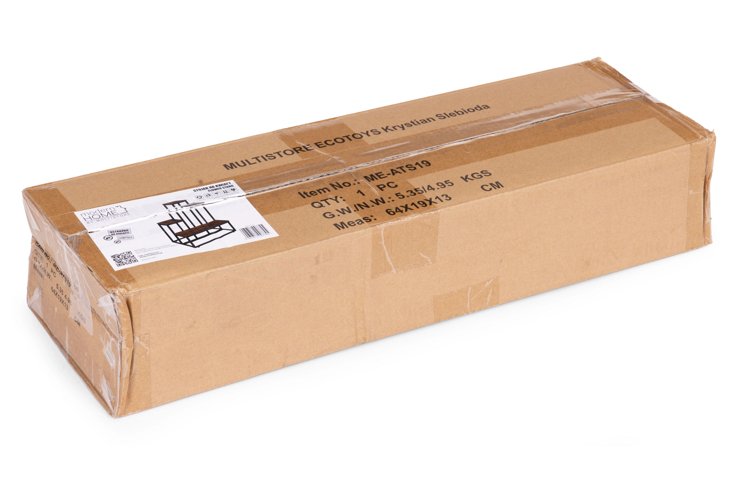 De constructie van poedergecoat staal zorgt voor een hoge weerstand tegen corrosie en mechanische slijtage. Planken van gelamineerde spaanplaat (DTD) in houtdecor benadrukken het loftkarakter en zijn gemakkelijk te onderhouden. Antislipvoetjes stabiliseren het meubel en beschermen de vloer tegen krassen.