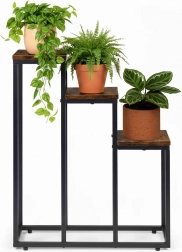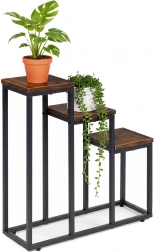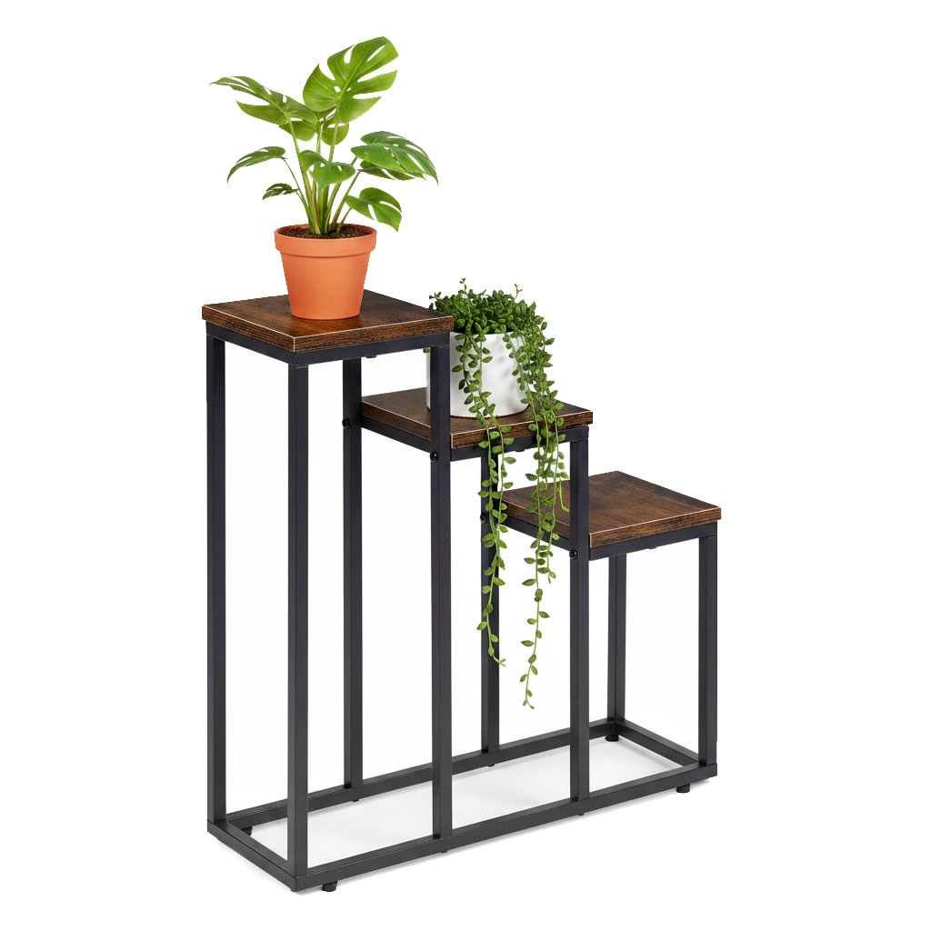 De driewerps plantenstandaard in industriële loftstijl combineert een minimalistisch design met een praktische verticale indeling. Dankzij de compacte afmetingen past hij moeiteloos in kleinere interieurs en helpt hij de hoogte van de ruimte te benutten – ideaal voor kruiden in de keuken, varens in de hal en decoratieve planten in de woonkamer.