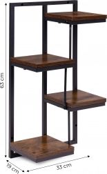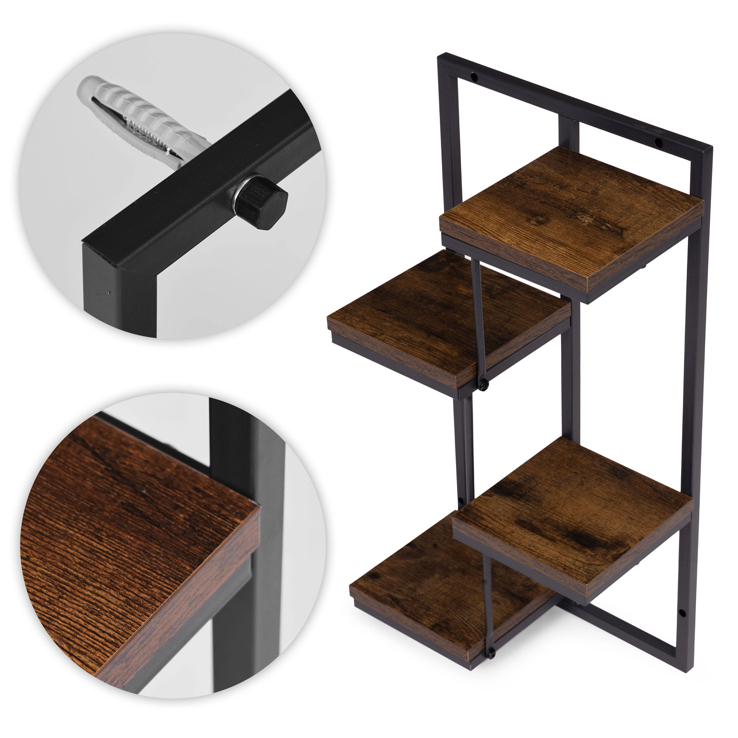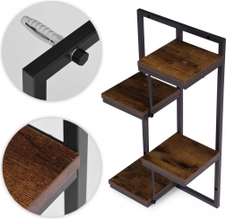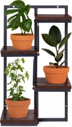 Het robuuste frame van poedergecoat staal is bestand tegen corrosie en slijtage, terwijl de bladen van gelamineerde spaanplaat in houtdecor voor een warme uitstraling zorgen. Het draagvermogen van 20 kg garandeert stabiliteit, ook voor zwaardere bloempotten en decoraties.