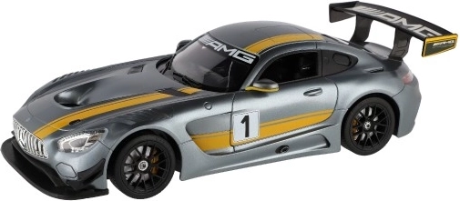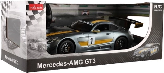 Ontdek het zorgvuldig vervaardigde RC-model MERCEDES-AMG GT3 in grijs met gele strepen en een opvallende achtervleugel. De gedetailleerde carrosserie valt op door sportieve lijnen en authentieke race-elementen die elke liefhebber van snelle auto's zullen bekoren.