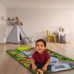 Dankzij gevoelige aanraakzones reageert de mat op elke stap en aanraking – speelt melodieën, realistische dierengeluiden af en motiveert kinderen om te bewegen. Intuïtieve bediening (aan/uit, volumeregeling, nummers overslaan) zorgt voor eenvoudig gebruik voor zowel kinderen als ouders.