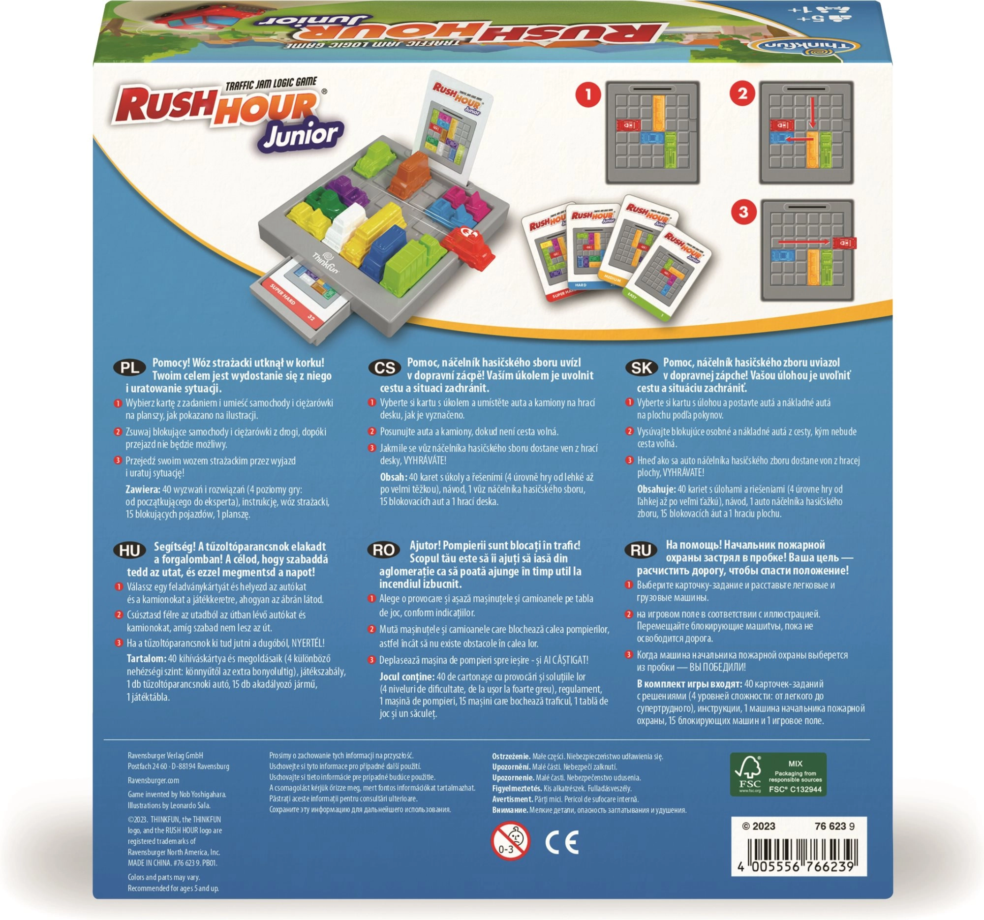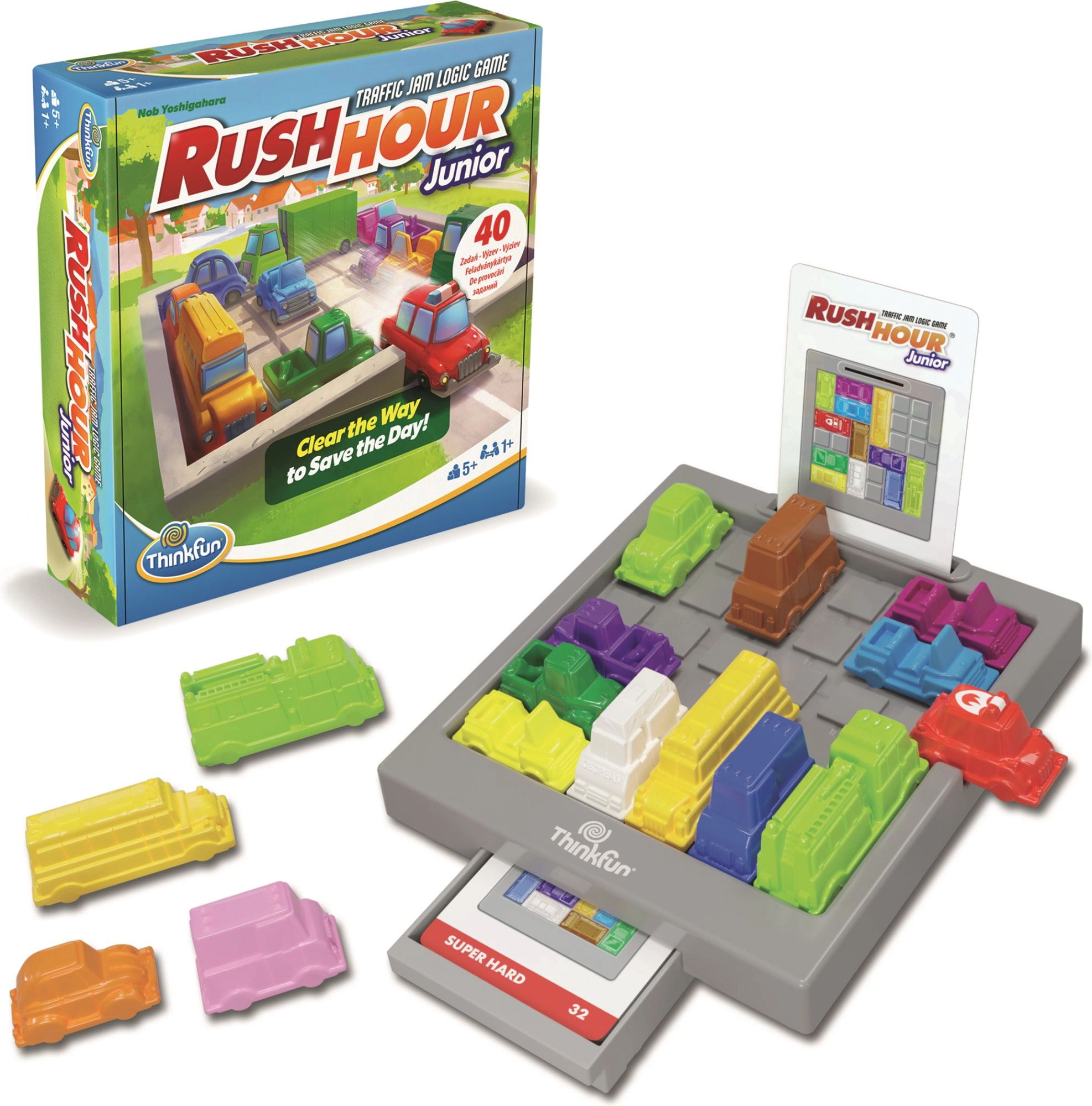 Rush Hour Junior is de kinderversie van het legendarische logicaspel RUSH HOUR, aangepast zodat het toegankelijk is voor jongere spelers. Het biedt geleidelijk moeilijkere niveaus die zelfstandig probleemoplossen en concentratie stimuleren. Dankzij de korte speelrondes is het perfect voor thuis en onderweg.